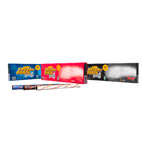 Chuva de Prata n°4 Premier Fogos, fonte de faíscas brilhantes em jato vertical, proporcionando efeito de chuva prateada ideal para entradas de noivos, aniversários e momentos especiais com fogos de baixo alcance.