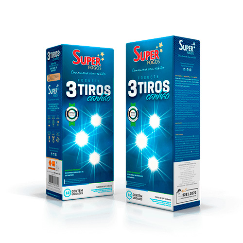 Foguete 3 tiros Premier Fogos, compacto e de fácil manuseio, produz três disparos sucessivos com forte impacto sonoro e visual, indicado para quem busca fogos de artifício práticos e seguros para pequenas comemorações.