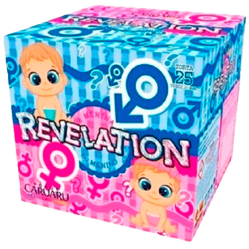 Torta Chá Revelação 25 tubos 3/4 Premier Fogos, torta de fogos compacta que dispara bombas aéreas em sequência com cores temáticas de chá revelação, ideal para quem deseja um show pirotécnico rápido, seguro e visualmente marcante.